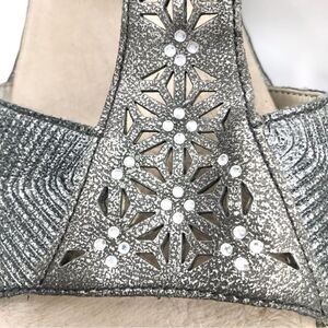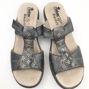 Rieker Silver Metallic Laser Cut Rhinestone MemoSoft Antistress Slide Sandals