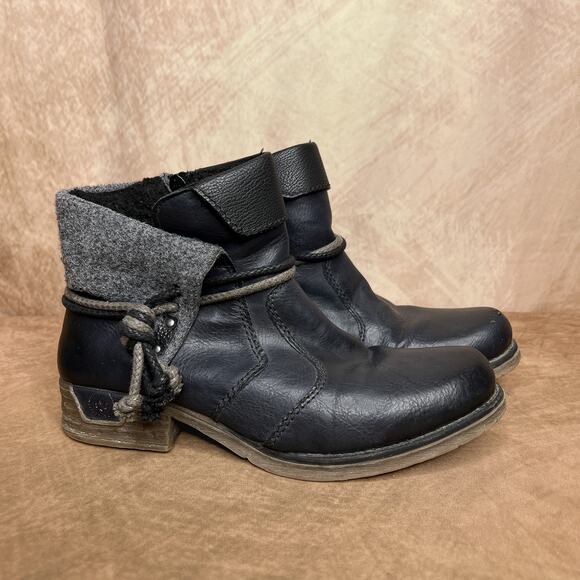 Rieker Strappy Rope Faux Leather Heeled Ankle Booties Outdoor Indie Sleaze Ski
