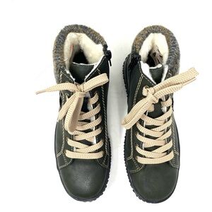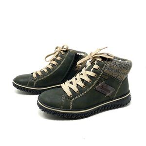 Rieker TEX Z4230-54 Bootie Green Combo Lace Up Ankle Boots Fleece Lined