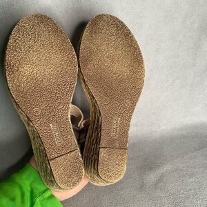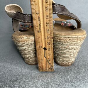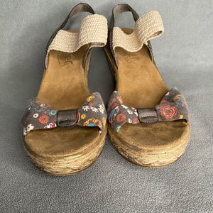 This Rieker Wedge Sandals Womens size 39/8 Ankle Strap Brown Paisley Floral