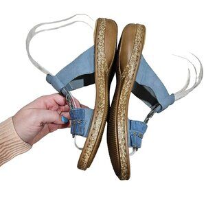 Rieker Womens Blue Embellished Open-Toe Sandals Slip On Boho Sequins Vacation 39