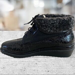 Rieker black patent 7.5 croco embossed Sherpa lined lace up boo…