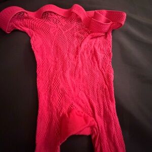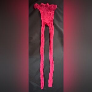 Vibrant hot pink fishnet tights with an allover floral pattern. Stretchy, eye-catching design. Perfect for bold outfits and layering.