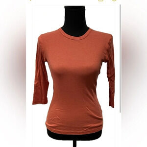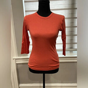 Ribbed tshirt Burn orange Round neck 3 quarter sleeves