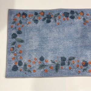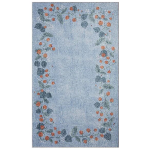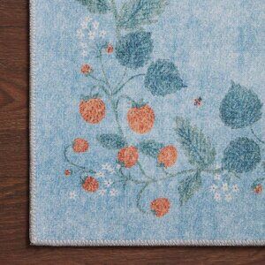 NWT Rifle Paper Co x Loloi Atelier Strawberries Periwinkle Non-Slip Area Rug. Add a dose of colorful florals to any corner with a rug from our Atelier collection, created with a skid-resistant backer, perfect for in front of the sink or in an entryway. Vivid colors are achieved through printing the design on a powerloomed base. Part of our Rifle Paper Co. × Loloi collection. 2'3" x 3'9", 100% polyester, printed power-loomed, 0.19" thickness, light blue with strawberry vines on the edges, easy to clean, will be rolled when shipped. This would be great in a little girl's room, playroom, bathroom, or anything else you can think of! So pretty!