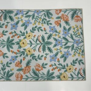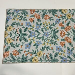 NWT Rifle Paper Co. x Loloi Atelier Colorfol Floral Non-Slip Runner Rug. Add a dose of colorful florals to any corner with a rug from our Atelier collection, created with a skid-resistant backer, perfect for in front of the sink or in an entryway. Vivid colors are achieved through printing the design on a powerloomed base. Part of our Rifle Paper Co. × Loloi collection. 2' x 5', 100% polyester, printed power-loomed, skid-resistant backing, 0.19" thickness, bright colors, fine details, and durability are achieved in this rug, which is made of power-loomed polyester and finished with a printed design. Cream with orange, yellow and blue floral print throughout. This would be perfect in a little girl's room, nursery, playroom, bathroom, hallway, laundry room, closet, entryway, or anywhere else you can think of! Will be rolled when shipped.