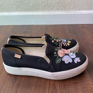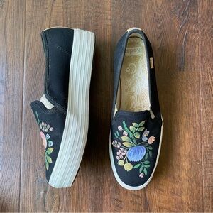 Rifle Paper Co. X Keds Floral Beaded Platform Slip On Black Sneakers SZ 6