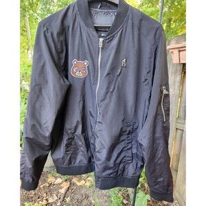 Riflessi Jacket Windbreaker Black Mens Size Large Bomber w/ Bear