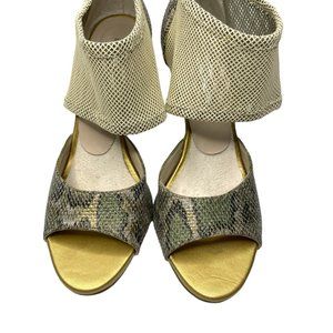 Right Bank Shoe Co. Womens Heels Size 8M Snake Print Open Toe Ankle Strap