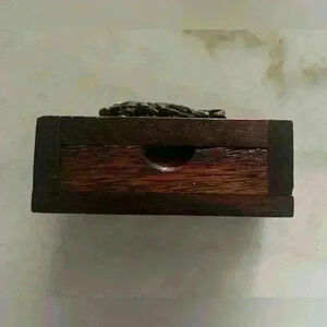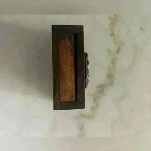 Wooden trinket box. Vintage, made in Taiwan. Teak Wood Box with Elephants. Approximately 3.5"L x 2.4"W x 1.5"H.