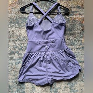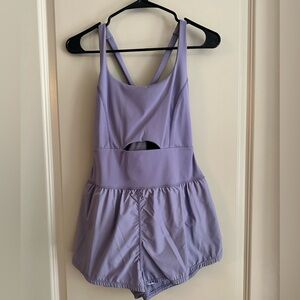 The perfect one-and-done running outfit, this easy romper features a slim-fitting top with a cooling cutout at the center paired with airy retro-style shorts.