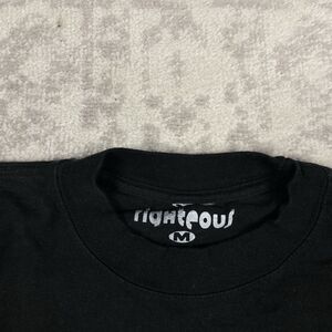 The Righteous T-Shirt in black, size medium, is a classic and versatile piece perfect for kids. This short sleeve, crew neck tee features a graphic print of snow and a boxy design, making it ideal for any casual outfit. Made from knit fabric, this regular fit shirt is machine washable for easy care. The brand and theme of this tee are inspired by music, sports, and a sense of righteousness, making it a fun and unique addition to any wardrobe.