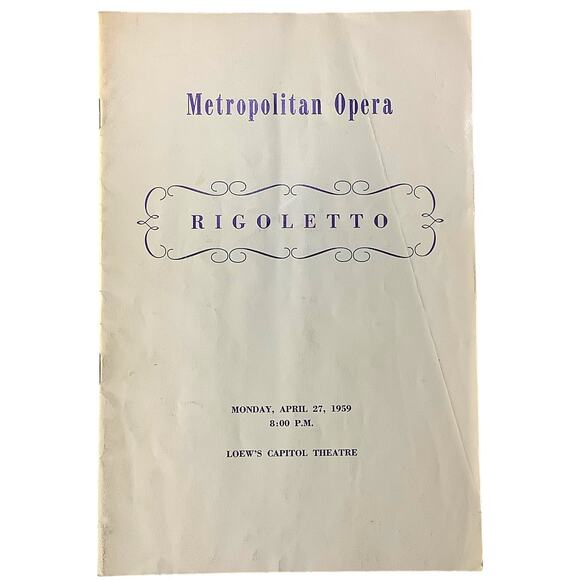 Rigoletto Playbill Apr 27 1959, Loew's Theater, Broadway NYC, Metropolitan Opera