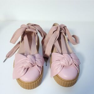 Complete with a bow-topped upper and lace-up ankle wrap, this look is everything girly and chic.