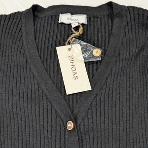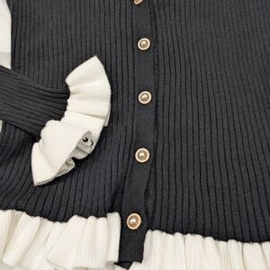Rihoas / New w. tags Medium / Black V Neck Contrast Trim Ruffle Cardigan