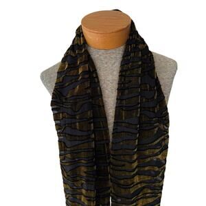 Rikka Scarf Womens 62" x 20" Green Black Velvet Brocaded Zebra Fringe Sheer
