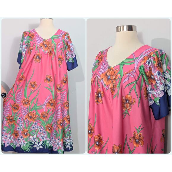 This dress is comfy and vibrant! Marked 18W/20W, 100% Polyester. There is one pocket on the right. Perfect for looking cute on your night in! No noted flaws.