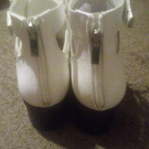 Size 39 White Riley Ankle Boot with a belt going across the front and top of the boot, white shoe laces. And 2inch thick heel