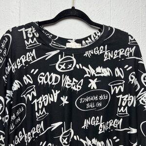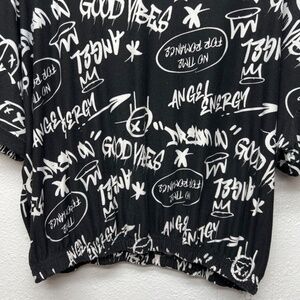 Riley & James pullover black & white top. Round neck. Short sleeves. Elastic hem. Semi-cropped boxy fit. Stretch. Soft fabric. In good used condition. No stains, tears or holes.