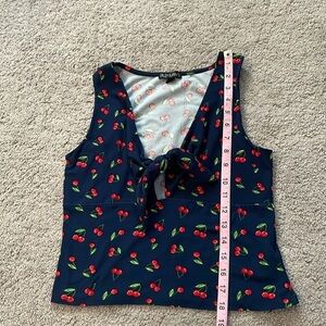 Riley & James | Navy Blue & Red Cherry Print Crop Top | Size Medium