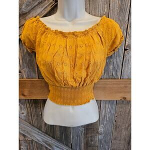 Riley & James XL (juniors) Y2K Mid drift middi summer yellow eyelet sunflower