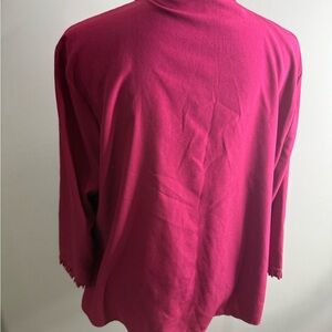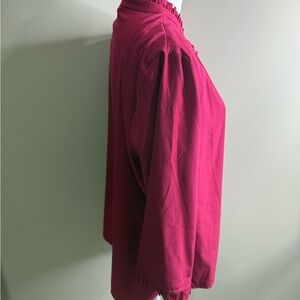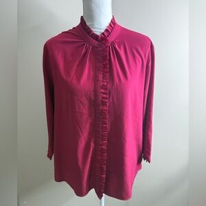 Chic fuchsia blouse with ruffle details. Perfect for versatile styling.