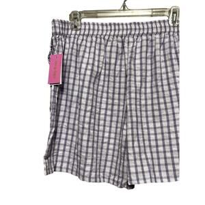 Riley & Rae Pull On Shorts Checkered Drawstring Side Pockets Purple White XL NWT