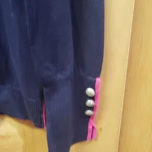 Perfect with jeans, this V-neck sweater from Riley & Rae pairs on-trend piping with bold button sleeve details.