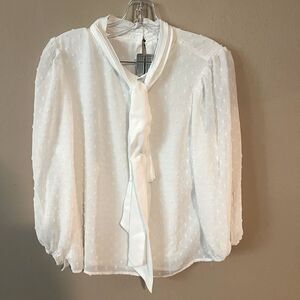 Riley & Rae Swiss Dot Neck Tie Blouse White Size Medium