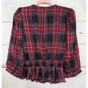Riley & Rae Sz XS Blouse Plaid Holiday Party Rouched Ruffled