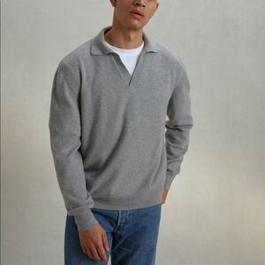 Riley Studio Unisex Oversized Gray Recycled Cashmere Polo Minimal Sweater Sz L