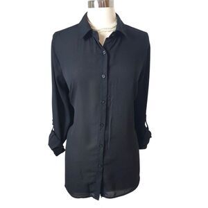 Riley+James Womens Plus Lace Back Button-Down Shirt 18/20W Black Chic Office Y2K