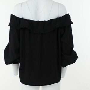 With flounce trim at the off-the-shoulder neckline, this Riley & Rae top is an elegant addition to your sophisticated style rotation.
