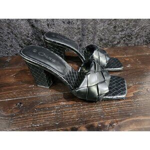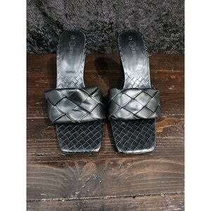 Rilista Black Woven Open-Toe Block Heel Sandals/Size 9.5