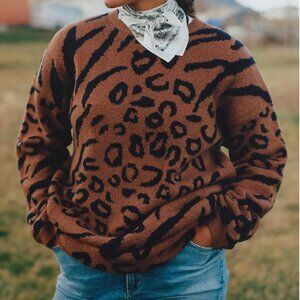 ⭐️ Rilke Leopard Cheetah Cat Chic Glam Girly Winter Classy Tunic Sweater Dress