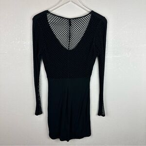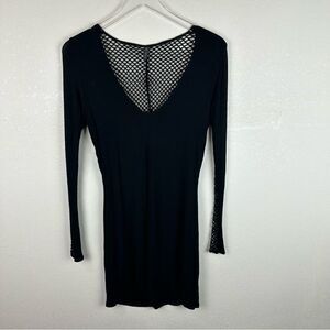 Riller Black Stretch Body Con Forming Dress Mesh Long Sleeve Club Vegas Sexy