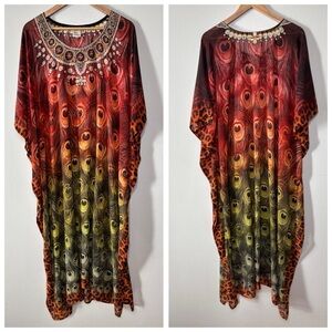 Rima Boho Artsy Multi Color Embellished Kaftan Dress Beach Cover Size OS