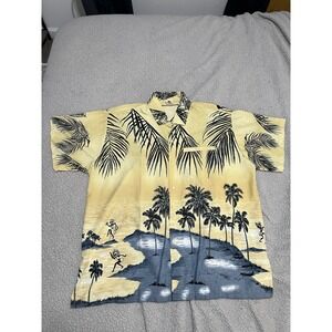 The Rima Collared Button Down Hawaiian shirt in size XL is a stylish and comfortable option for men looking for a casual yet trendy shirt. Made from silk, this shirt features a classic button-up style with a collared neckline, perfect for a laid-back yet polished look. The Hawaiian theme adds a fun and tropical touch to the design, making it a great choice for those who want to showcase their island-inspired style. This shirt is a versatile addition to any man's wardrobe, suitable for various casual occasions.