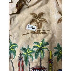Rima Hawaiian Button Up Shirt XXL Aloha Surfing Palm Tree Bus Tan Top Vintage