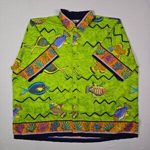 Rima International Fish Print Hawaiian Shirt 2XL Green Short Sleeve Beachwear