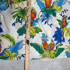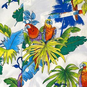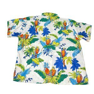 Rima Shirt Men XL Parrot Tropical White Blue Button Front Hawaiian Palm Tree