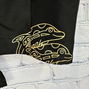 Rima Women's Porpoise Themed Tie Back Halter Top, Size Small, Black w/ Gold, 100% Terivoile (Polyester)