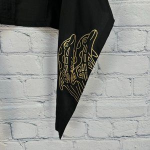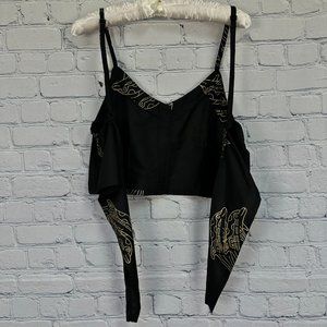 Rima Women's Porpoise Themed Tie Back Halter Top, Size Small, Black w/ Gold