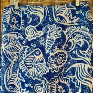 Beautiful batik fabric with an ocean, fish, nautical design swim sarong.