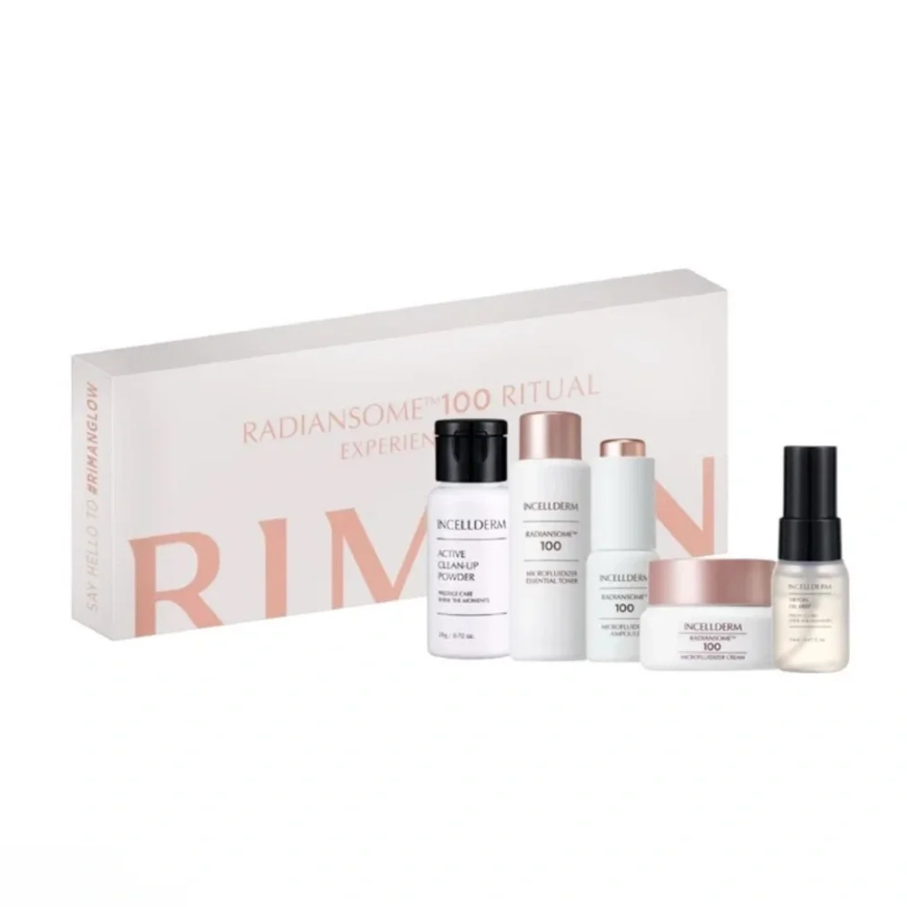5-piece set travel sizes. Experience the Radiansome 100 Ritual with this skincare set. Includes multiple products for a complete routine.