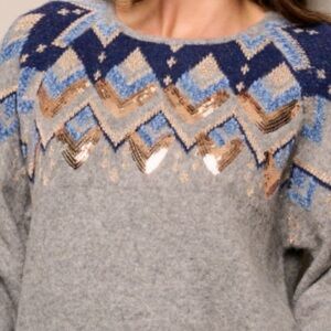 Embrace elegance with this stylish gray and blue sequin embellished sweater.