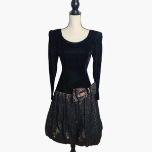 Rimini Black Vintage Velvet and Metallic Bubble Skirt Dress