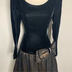 Rimini Black Vintage Velvet and Metallic Bubble Skirt Dress With Bow