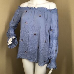 Sunshine-ready in sweet floral embroidery, this shoulder-flaunting top features smocked sleeves that majorly up the flirt factor.