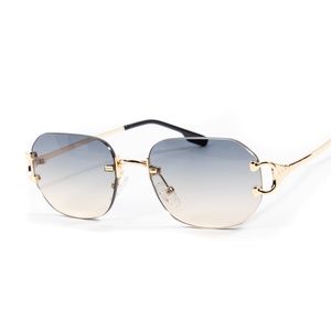 Rimless Gray And Tan Gradient Tint Gold Frame Hip Hop Vintage Fashion Sunglasses